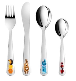 Jika Anda memilih set anak-anak untuk usia prasekolah, maka ukurannya akan lebih kecil daripada untuk orang dewasa, tetapi terbuat dari bahan yang sama. Meskipun perlu dicatat bahwa seringkali anak-anak prasekolah, meniru orang dewasa, menolak menggunakan peralatan kompak dan memilih sendok / garpu, "seperti ibu mereka".