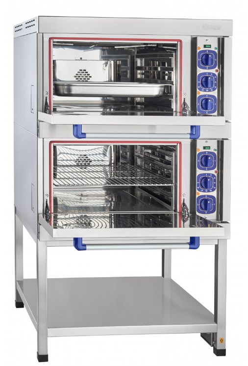 Peralatan penggorengan dengan dua bagian, dirancang untuk menyiapkan berbagai hidangan, termasuk kue kering. Ini digunakan di kafe, restoran, toko dengan produk mereka sendiri yang baru disiapkan. Setiap oven dilengkapi dengan 4 tingkat untuk loyang berukuran 530x470 mm.Set untuk setiap oven termasuk 2 wadah gastronorm GN1/1 dan kisi stainless steel GN 2/1. Suhu maksimum yang mungkin adalah 270tentangC. Pemanasan hingga 240tentangC terjadi dalam 20 menit.