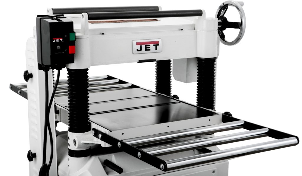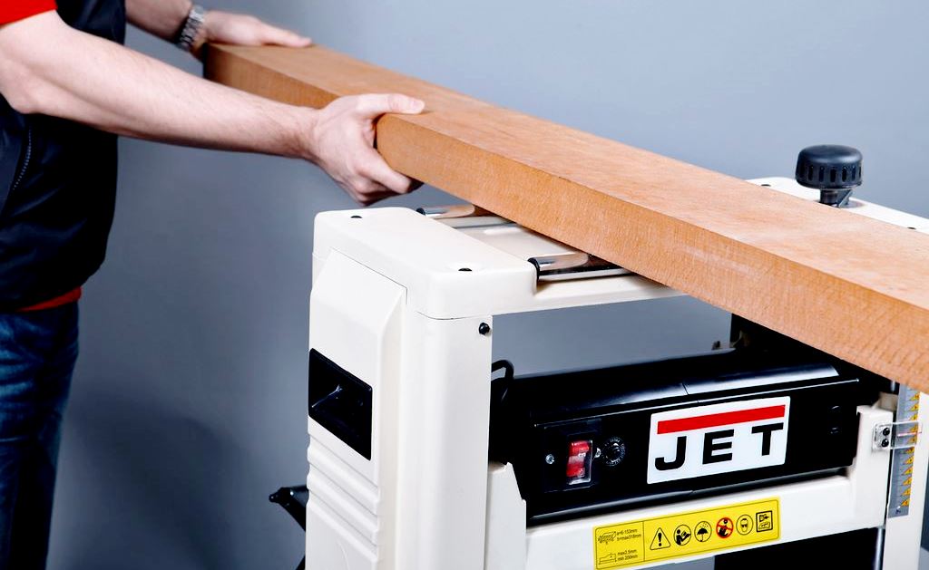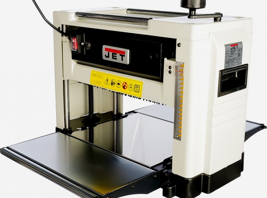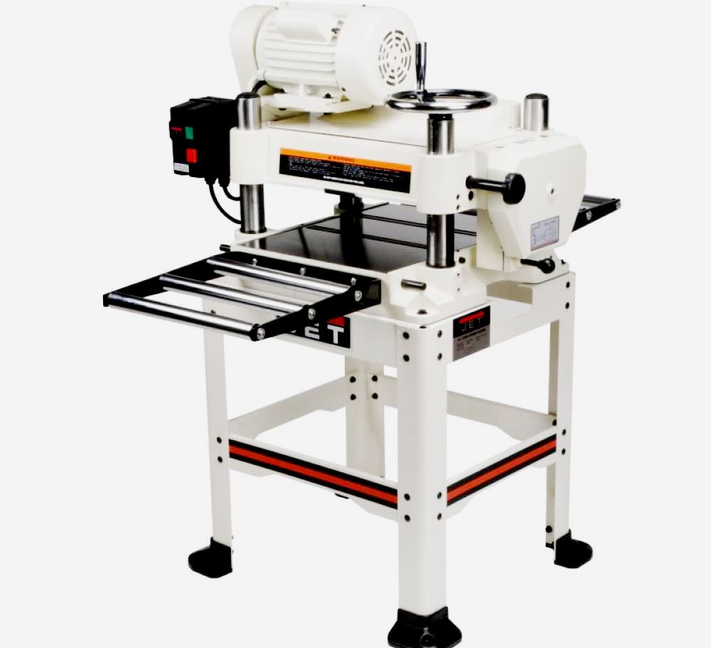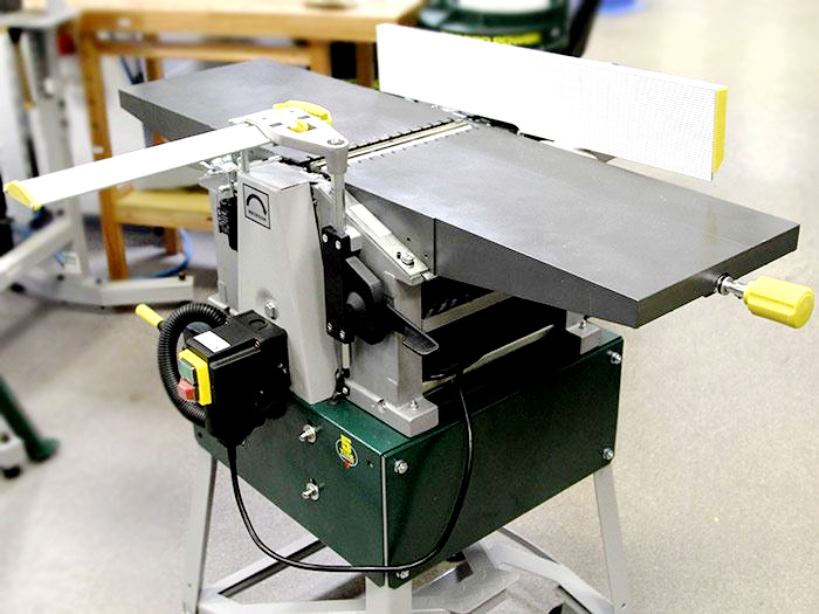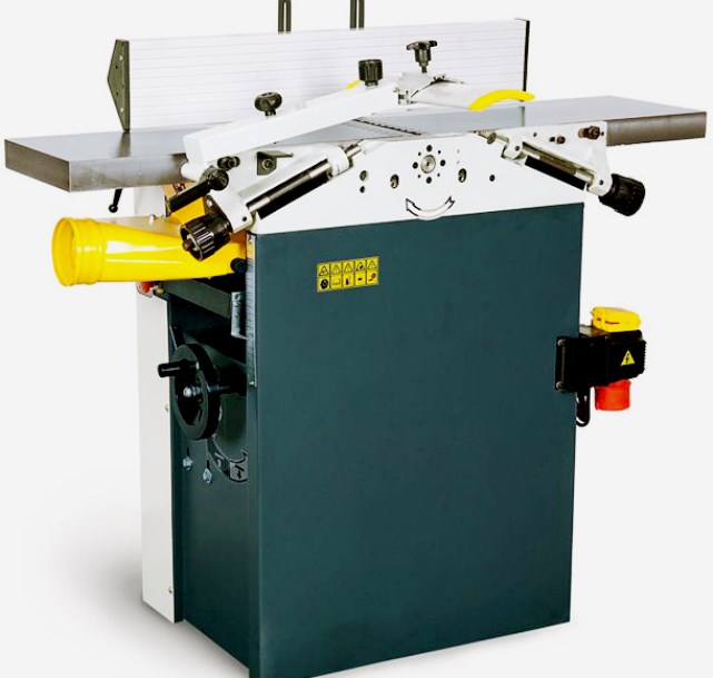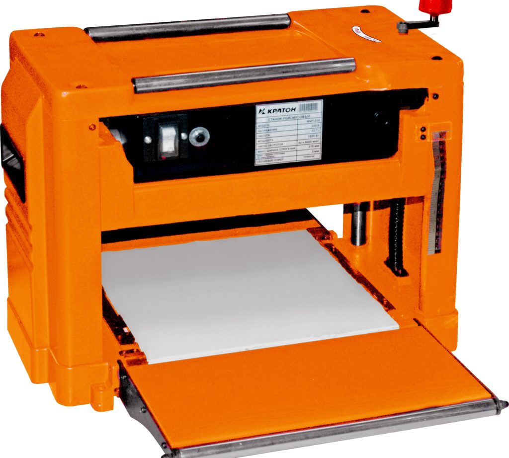 Mesin penebalan profesional yang meratakan permukaan kayu apa pun hingga kedalaman 4 mm. Diangkut oleh penumpuk. Terhubung ke catu daya fase tunggal. Benda kerja diumpankan dengan kecepatan 13,5 m/menit. Dilengkapi dengan poros pisau berputar, yang bertanggung jawab untuk bekerja dengan permukaan datar.