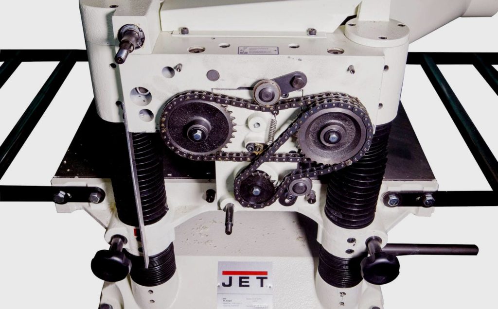 Perangkat ini memiliki indikator daya dan kinerja yang sangat baik, yang memungkinkannya dipasang baik di bengkel pribadi maupun di bengkel produksi dengan sejumlah besar pekerjaan yang akan datang. Unit besar dengan berat 300 kg, dengan desain yang kaku dan stabil, hadir standar dengan unit planer yang dilengkapi dengan motor dan mekanisme umpan tetap. Ketebalan kayu disesuaikan dengan menggerakkan meja ke atas dan ke bawah kolom. Ada penyesuaian laju umpan dua tahap, sistem roller, kemampuan untuk memasang poros pemotong heliks dan fungsi lainnya.