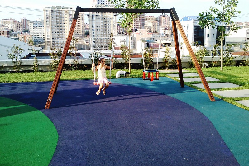 - Tetapi untuk area bermain di taman bermain, Anda harus memilih opsi minimal 4 cm Produk dengan ketebalan seperti itu bahkan dapat diletakkan di tanah terbuka atau pasir.