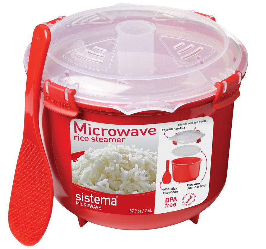 Produk untuk memasak nasi dan sereal lainnya. Dapat digunakan untuk memasak bubur atau menghangatkan makanan siap saji. Penanak nasi berukuran kecil dan cocok untuk penggunaan sehari-hari. Di peralatan dapur, Anda bisa memasak bubur susu atau sup. Fitur produk adalah tidak adanya elemen pemanas. Setelah menempatkan semua produk yang diperlukan, wadah harus ditempatkan di microwave. Klip khusus pada tutupnya memberikan fiksasi berkualitas tinggi. Setelah produk matang, suhu dipertahankan untuk waktu yang lama. Mangkuk dengan volume 2,6 liter, ditutup dengan lapisan anti lengket. Tangki air dapat dilepas dan dapat dibersihkan di mesin pencuci piring.