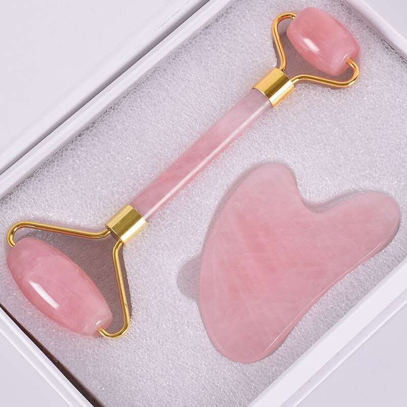 Set termasuk pemijat batu (kuarsa) dan pengikis Guasha. Di dalam kotak hadiah ada instruksi terperinci tentang cara melakukan pijatan dengan benar dan seefisien mungkin. Bekerja pada area mata, leher, wajah. Biaya rata-rata: 890 rubel.