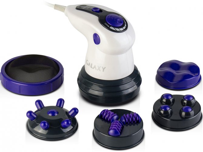 Berkat beberapa nozel yang dapat diganti, alat ini dengan mudah memijat area yang berbeda. Kontrol kecepatannya halus, ada kemungkinan pemanasan dan pengaturan mode IR.Set lengkap: nosel jari, nosel rol, nosel bola, nosel bergelombang, nosel jaring pelindung. Daya: 50W. Berat: 1,16kg. Dimensi: 25.7x19.7x11.2 cm Harga: 1423 rubel.
