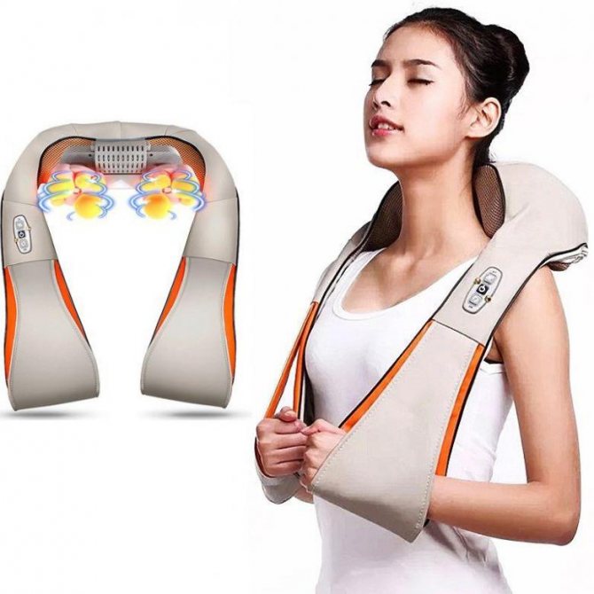Opsi universal mengerjakan sejumlah besar zona: bahu, punggung, punggung bawah, lengan, kaki, leher. Memiliki 4 kepala pijat yang bekerja pada 4 mode. Waktu kerja: 15 menit. Mati secara otomatis. Daya: 24W. Berat: 980 gram.Dimensi: 31x18x9 cm Panjang kawat: 1,4 m Bahan produksi: kulit buatan, logam, polivinil klorida, poliuretan. Harga rata-rata: 1299 rubel.
