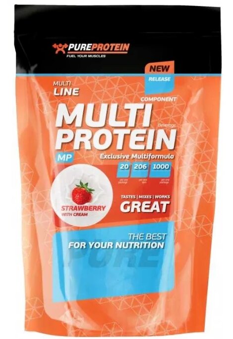 Isi: 40% protein whey, 30% isolat kedelai dan kasein misel.Vitamin: A, C, kelompok B, PP, E). Aditif: pemanis (sukralosa), pengemulsi (lesitin, xanthan gum), fruktosa, penyedap.