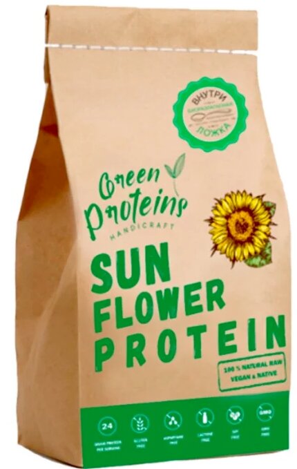 Dijual dalam kantong kertas.Di sisi depan - gambar bunga matahari, huruf hijau (nama, karakteristik).