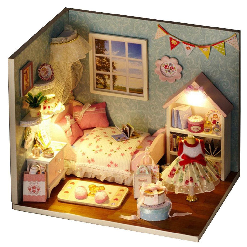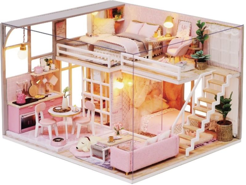 Satu lagi buatan China. Merakitnya tidak sesulit versi sebelumnya, tetapi akan memakan waktu sekitar 20 jam untuk merakit strukturnya. Alhasil, ternyata kamar dengan tempat tidur besar dan atribut tambahan furnitur. Dekorasi membuatnya jelas bahwa ini adalah kamar perempuan.