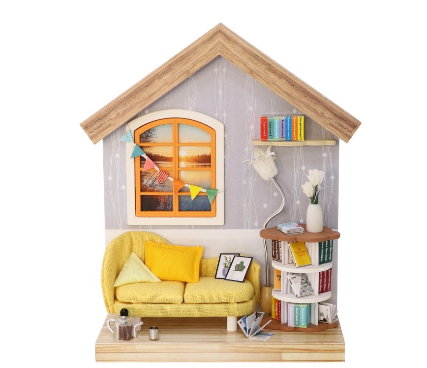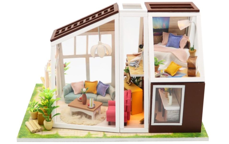 Ini bukan hanya sebuah ruangan, tetapi rumah dua lantai yang nyata, dan bahkan dengan area taman kecil.Tampilan akhir akan menyenangkan seseorang dari segala usia.