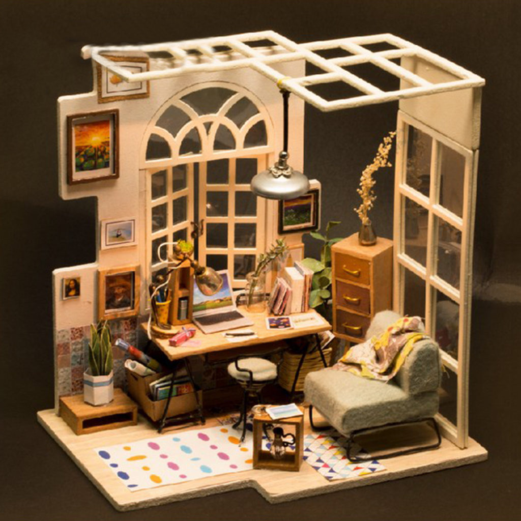 Model seperti itu cocok tidak hanya untuk anak-anak, tetapi juga sebagai hadiah untuk orang dewasa yang juga akan dengan antusias merakit kantor untuk dirinya sendiri. Anda dapat meletakkan kotak kamar yang sudah jadi di kantor nyata, itu akan terlihat sangat simbolis.