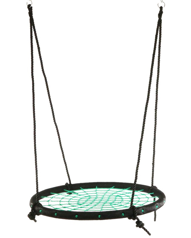 Model berengsel bentuk bulat untuk anak sampai 3 tahun. Dudukannya sederhana dan serbaguna, berkat itu kursi dapat digantung pada penyangga horizontal apa pun di taman atau di rumah - di batang horizontal, cabang pohon yang kuat, balok.Gendongan nyaman yang kuat, serta pengikat yang andal memastikan keamanan bayi yang gelisah. Tinggi tali dapat disesuaikan. Bingkai logam dilengkapi dengan jalinan pelindung yang terbuat dari kabel sintetis. Berat maksimum yang diperbolehkan adalah 100 kg. Joknya juga terbuat dari bahan sintetis, nyaman, praktis, mudah dibersihkan dari kotoran, dan memiliki sifat anti lembab. Ayunan Big Nest dijual dalam keadaan utuh. Harga rata-rata adalah 7.500 rubel.