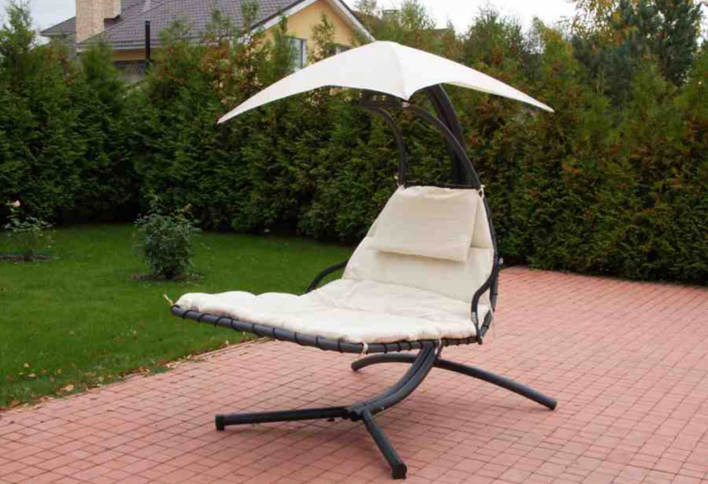 Ayunan sofa yang andal dan tahan lama terbuat dari bahan berkekuatan tinggi. Model lapang ini memiliki kanopi matahari berbentuk setengah lingkaran yang terbuat dari bahan tahan air yang tahan lama. Kursinya terbentang menjadi tempat tidur yang lebar, juga dilengkapi dengan sandaran kepala, sandaran samping yang empuk, dan bantal. Bagian belakang dapat disesuaikan dengan lancar. Desainnya dilengkapi dengan dua tatakan gelas yang bisa dilepas untuk kacamata. Kerangka terbuat dari pipa baja dengan penutup polimer. Beban maksimum yang diizinkan adalah 320 kg
