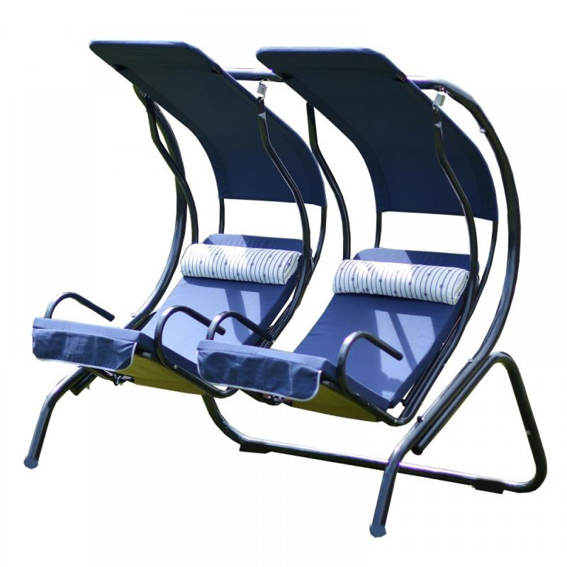 Model yang tidak biasa dengan dua kursi gantung independen terpisah. Setiap kursi tersebut dilengkapi dengan kanopi sendiri dari hujan dan matahari. Bingkai terbuat dari logam, memiliki kekuatan dan stabilitas tinggi - bahkan jika kursi bergoyang pada kecepatan yang berbeda, stabilitas struktur tidak akan terganggu. Produk ini dapat menahan beban hingga 280 kg. Kain kursi tahan air. Biaya rata-rata model adalah 17.061 rubel.