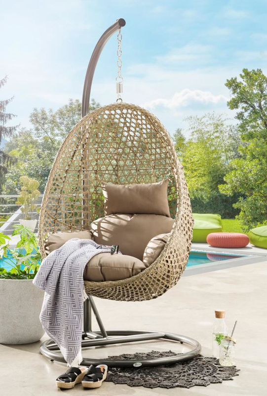 Berbagai desain termasuk jenis seperti kursi kepompong, kursi klasik, kursi santai gantung, buaian.
