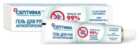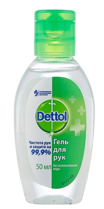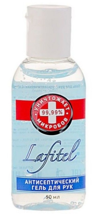 Gel domestik murah dalam botol dengan dispenser 50 ml mengandung 68% isopropil alkohol, air, gliserin, minyak jarak terhidrogenasi PEG-40, ekstrak Aloe Vera SC-CO2 dan zat lain yang dengan cepat dan efektif mendisinfeksi tangan, menyediakan bidang antimikroba yang bertindak beberapa jam. Asisten yang sangat diperlukan di mana tidak ada air dan sabun. Cukup dioleskan ke kulit dan langsung kering.