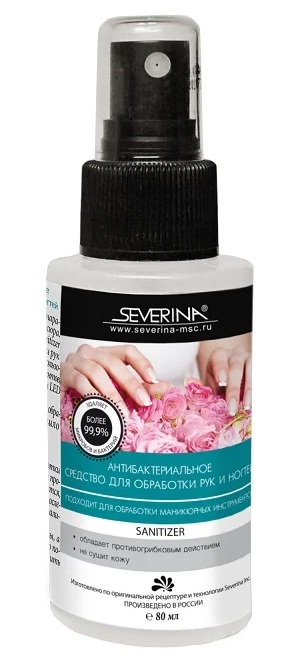 Semprotan untuk tangan dan kuku disemprotkan agak jauh dari permukaan kulit. Dapat digunakan untuk merawat alat manicure atau pedicure.Komposisinya memiliki efek antibakteri, melindungi dan menetralkan bakteri berbahaya dengan sempurna.