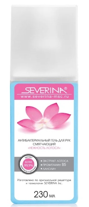 Gel domestik murah dalam botol dengan dispenser 50 ml mengandung 68% isopropil alkohol, air, gliserin, minyak jarak terhidrogenasi PEG-40, ekstrak Aloe Vera SC-CO2 dan zat lain yang dengan cepat dan efektif mendisinfeksi tangan, menyediakan bidang antimikroba yang bertindak beberapa jam. Asisten yang sangat diperlukan di mana tidak ada air dan sabun. Cukup dioleskan ke kulit dan langsung kering.