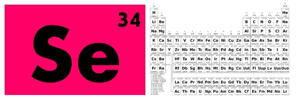 Selenium, Se adalah unsur kimia dari tabel periodik dengan nomor atom 34. Itu milik kelompok VI. Mirip dalam sifat kimia untuk arsenik.