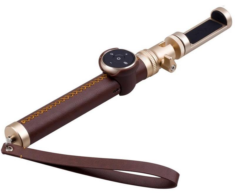 Perangkat selfie yang sangat orisinal dalam hal desain eksternal. Pegangannya dibungkus dengan kulit ramah lingkungan dan dihiasi dengan jahitan buatan tangan. Skema warna untuk berbagai opsi mencakup 6 warna - dari hitam klasik hingga kuning muda. Perpanjangan dimungkinkan hingga 90 sentimeter (saat dilipat - 18 sentimeter), kasingnya terbuat dari logam tahan lama dengan lapisan anti korosi, beratnya 750 gram. Kamera aksi diperbolehkan. Perluasan dimungkinkan menjadi lima bagian, dan dudukannya memiliki perlindungan khusus terhadap goresan. Tombol-tombol yang terletak di pegangan, selain fungsi pemotretan dasar, dapat mengaktifkan musik latar dan perekaman suara. Opsional - meremas pegangan dengan telapak tangan Anda dapat memulai pelepasan rana.Biaya yang disarankan untuk rantai ritel adalah 3.000 rubel.
