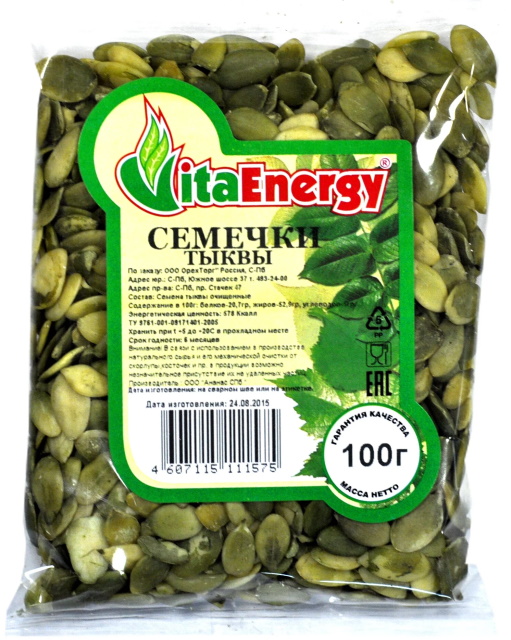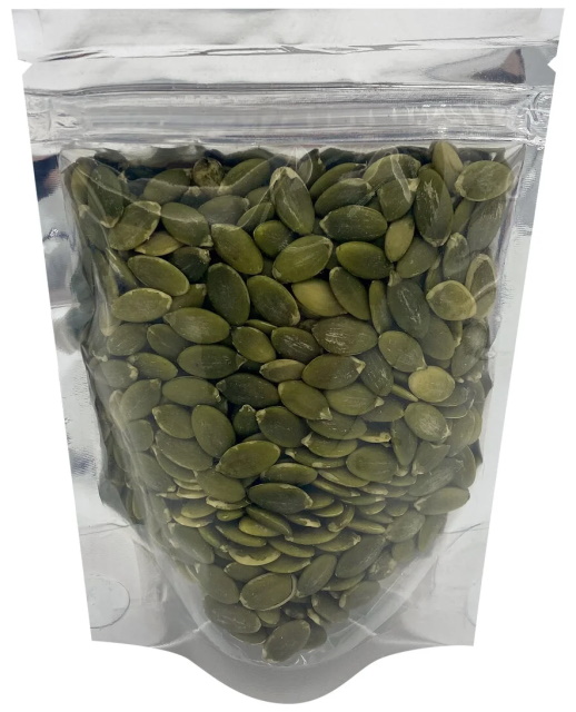 Produk yang bermanfaat dengan kandungan zat besi, vitamin, seng, dan elemen makro lainnya yang tinggi. Kernel mentah yang dikupas dalam cangkang dengan warna kehijauan. Mereka memiliki tekstur berminyak dan rasa manis. Dikemas dalam tas kerajinan dengan pengikat ritsleting. Pada pembukaan pertama, sobek sudut di sepanjang alur kecil pada paket. Informasi yang berguna ada di belakang. Rasanya enak, manis, dengan nuansa nutty.