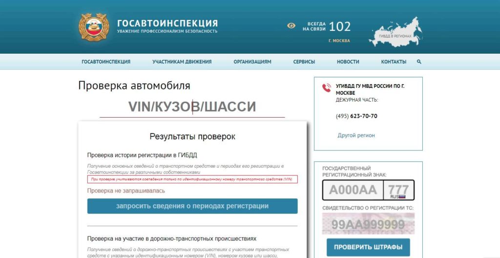 Layanan untuk memeriksa kendaraan dengan nomor VIN, nomor plat dan data PTS dan STS lainnya ditawarkan oleh banyak situs. Sebagai aturan, mereka memiliki antarmuka intuitif dengan jendela entri data khusus dan berisi daftar informasi yang akan diberikan berdasarkan permintaan.