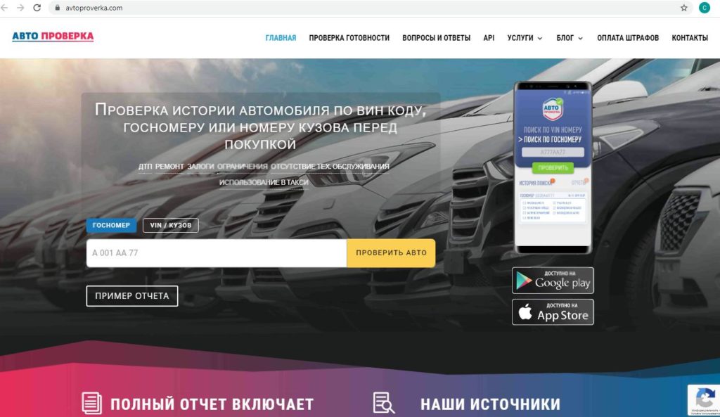 Salah satu situs paling populer tidak hanya untuk menemukan mobil, tetapi juga untuk memeriksanya. Menyediakan berbagai paket layanan kepada penggunanya: lima laporan dengan harga 120 rubel. per laporan, paket sepuluh laporan dengan harga 99 rubel. untuk satu, dll. Laporan disusun sedetail mungkin dan memiliki informasi tentang jumlah pemilik, adanya batasan. Memeriksa apakah mobil telah dicuri. Bekerja di taksi dan berbagi mobil diperiksa, partisipasi dalam kecelakaan dengan karakteristik kerusakan, partisipasi dalam lelang mobil yang rusak, perkiraan biaya perbaikan dihitung dan berdasarkan semua informasi yang diterima, skor peringkat dan perkiraan biaya kendaraan ditampilkan.