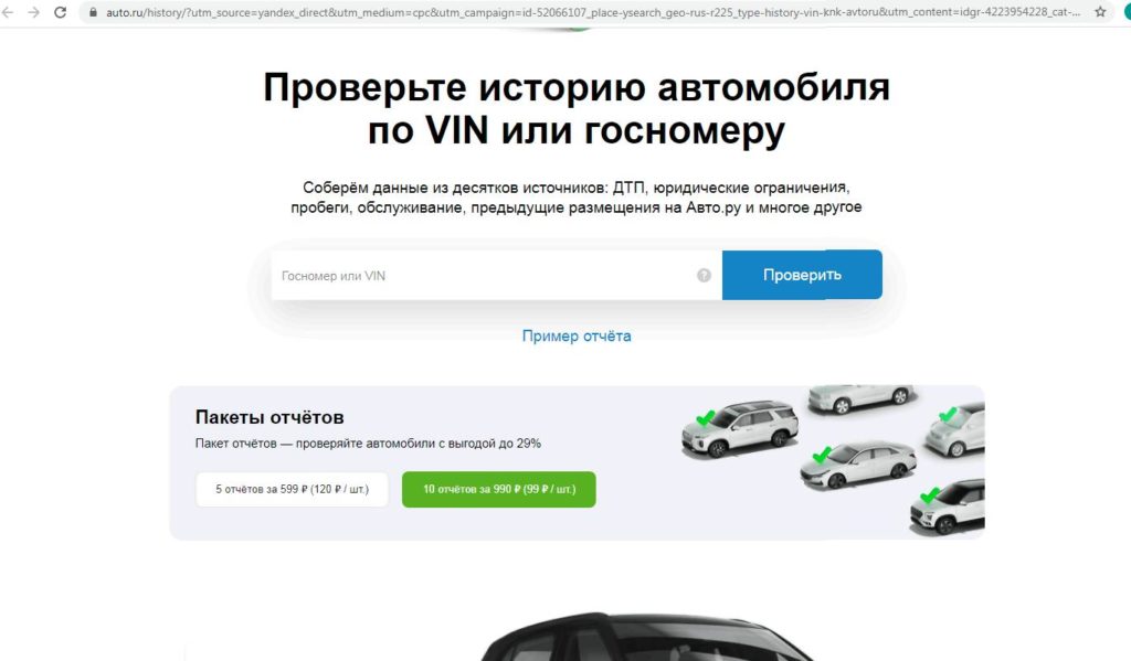 Layanan ini menyediakan layanan berbayar untuk mengumpulkan informasi terlengkap tentang mobil, termasuk data berikut: jumlah pemilik, tindakan pendaftaran, penggunaan taksi.Nilai pasar rata-rata, berada dalam janji atau pencurian dan pembatasan yang diberlakukan, partisipasi dalam kecelakaan, jarak tempuh dan riwayat perawatan, informasi tentang kebijakan OSAGO saat ini diturunkan. Biaya laporan adalah 150 rubel.