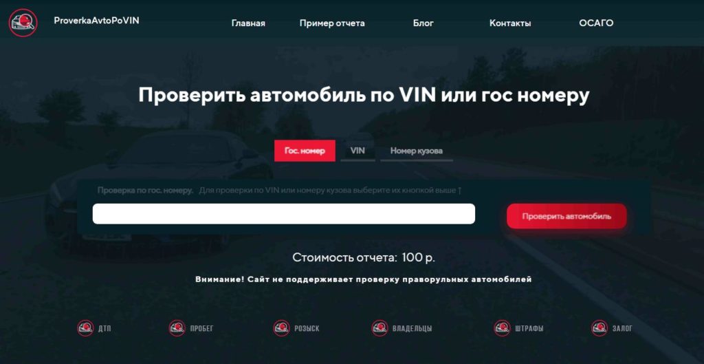 Layanan ini memberikan kesempatan untuk menerima laporan yang akan berisi informasi tentang pemilik sebelumnya, mengalami kecelakaan, pencarian dan jaminan, denda yang dikenakan. Biayanya adalah 100 rubel. Pengecekan dimungkinkan dengan nomor negara bagian, nomor vin dan nomor badan.