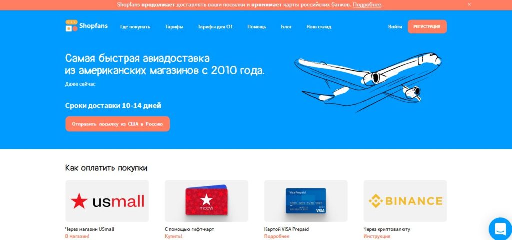 Situs web perusahaan memiliki baris teratas dengan informasi terkini tentang pengiriman dan pembayaran dari kartu Rusia.