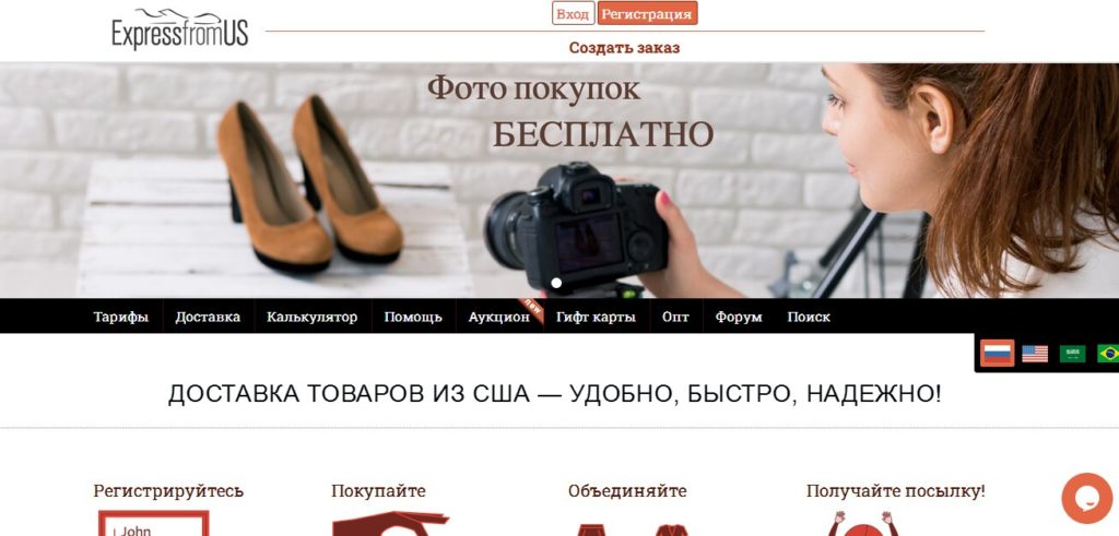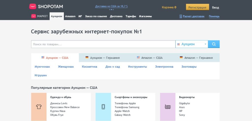 Halaman utama situs memiliki menu: cara membeli, penjualan, harga, bantuan, bonus, blog. Kategori terpisah berisi bantuan untuk pembelian, cara memilih ukuran, daftar toko "hitam", barang terlarang. Ada kalkulator biaya pengiriman online.