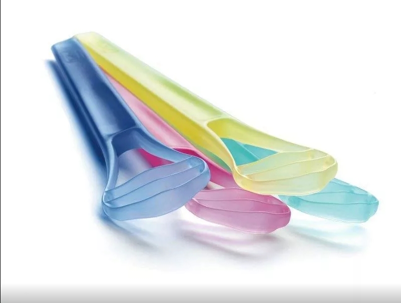 Produk asal Spanyol. Itu terbuat dari plastik dan memiliki bentuk lingkaran yang mengulangi bentuk lidah. Melakukan pekerjaan yang baik untuk membersihkan semuanya. Area cakupannya besar, sehingga plak dihilangkan dengan cepat dan tidak ada refleks muntah. Tipis, bisa ditekuk dengan baik, tapi cukup kuat. Pegangannya anti slip, sehingga mudah digunakan.