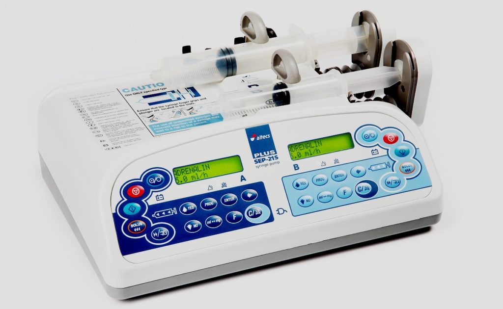 Dispenser jarum suntik berkualitas tinggi diproduksi di Cina. Pengembangan memiliki fungsi Anti-bolus, yang melibatkan pergerakan sejumlah cairan ke arah yang berlawanan ketika sinyal penjepitan dipicu. Ini tidak akan memungkinkan overdosis, mencegah konsekuensi negatif bagi pasien.