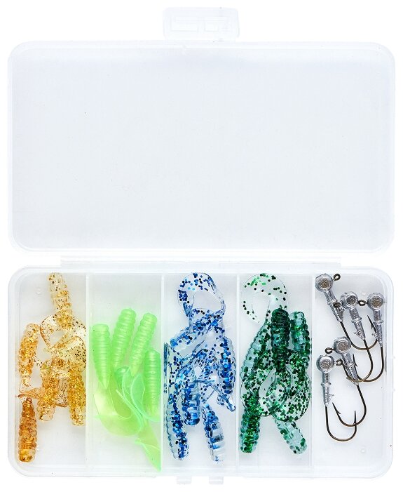 Salah satu set paling populer, termasuk dalam TOP-5 dalam hal penjualan di Yandex Market, yang berisi 25 umpan silikon yang dapat dimakan yang cocok untuk menangkap predator seperti pike, asp, hinggap, dan zander.