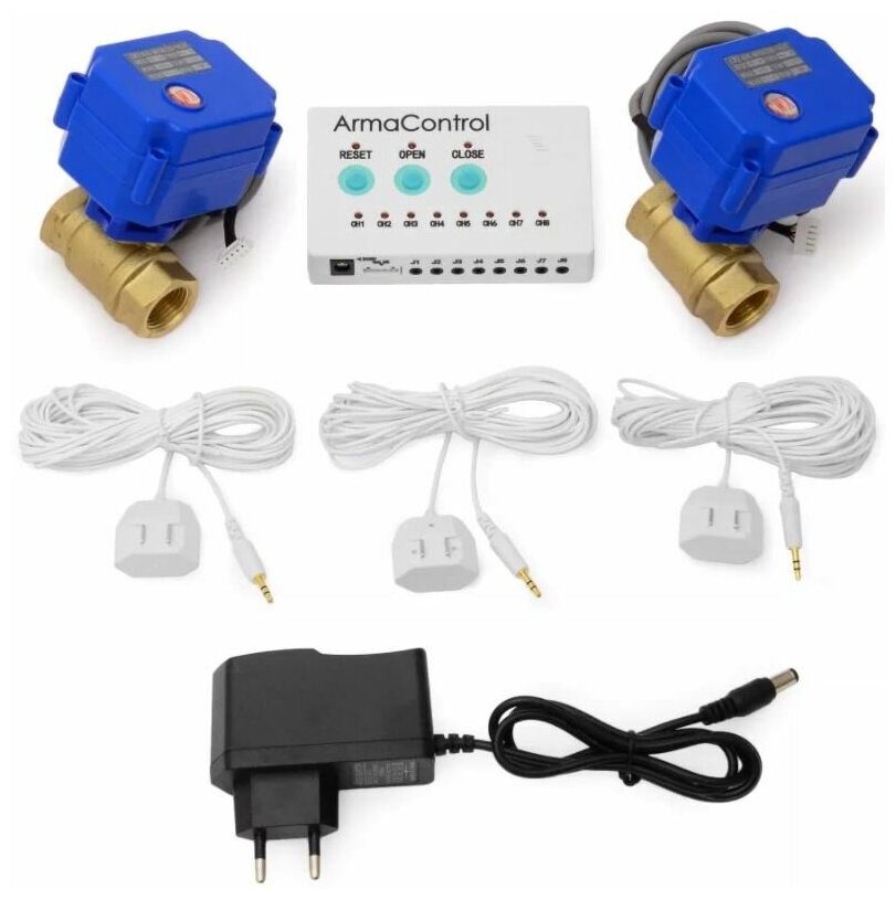Perangkat yang andal, sederhana, dan murah, di mana katup bola listrik bertindak sebagai aktuator. Kit ini dilengkapi dengan 2 keran, yang memungkinkan Anda memasang sistem saat air dingin dan panas masuk ke unit. Dalam konfigurasi dasar, sudah ada 3 sensor, dan hingga 8 sensor dapat dihubungkan ke maksimum 1 pengontrol, yang memungkinkan Anda untuk sepenuhnya mengendalikan tempat-tempat kemungkinan kebocoran. Diameter pipa tempat elemen sistem dapat dipasang adalah 1/2″.