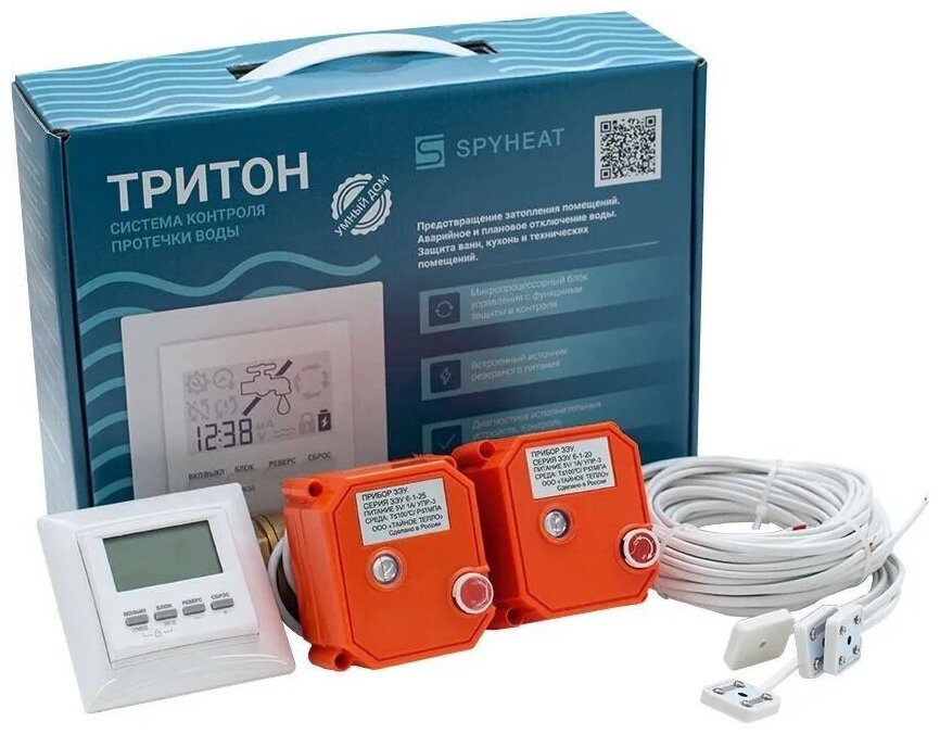 Kit ini dirancang untuk pipa dengan diameter 2¾. Seperti semua sistem merek ini, SPYHEAT triton 20-002 dibedakan oleh respons yang cepat terhadap terjadinya kebocoran. Reaksi hanya membutuhkan waktu 1 detik dan air akan mati dalam waktu 5 detik. Peringatan yang diberikan tentang situasi dalam bentuk sinyal suara dan cahaya merupakan keuntungan signifikan dari kit ini.