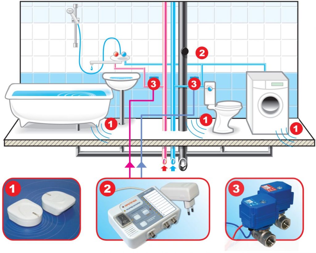 Jangkauan sistem perlindungan sangat luas, dari perangkat sinyal sederhana yang memberikan sinyal suara khusus jika terjadi kebocoran, hingga struktur yang lebih kompleks yang dapat sepenuhnya mematikan pasokan air ke ruangan.