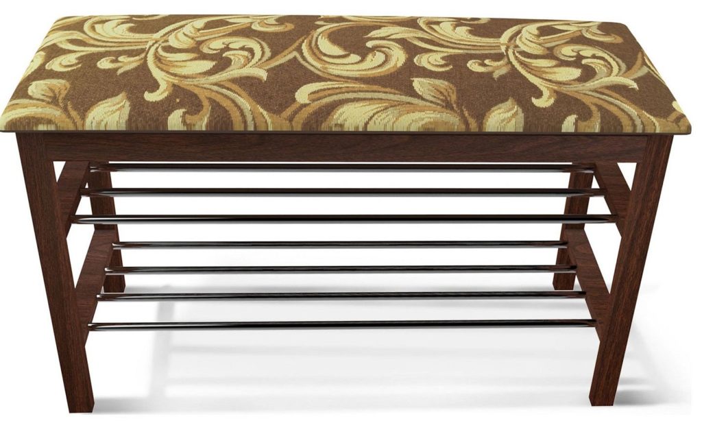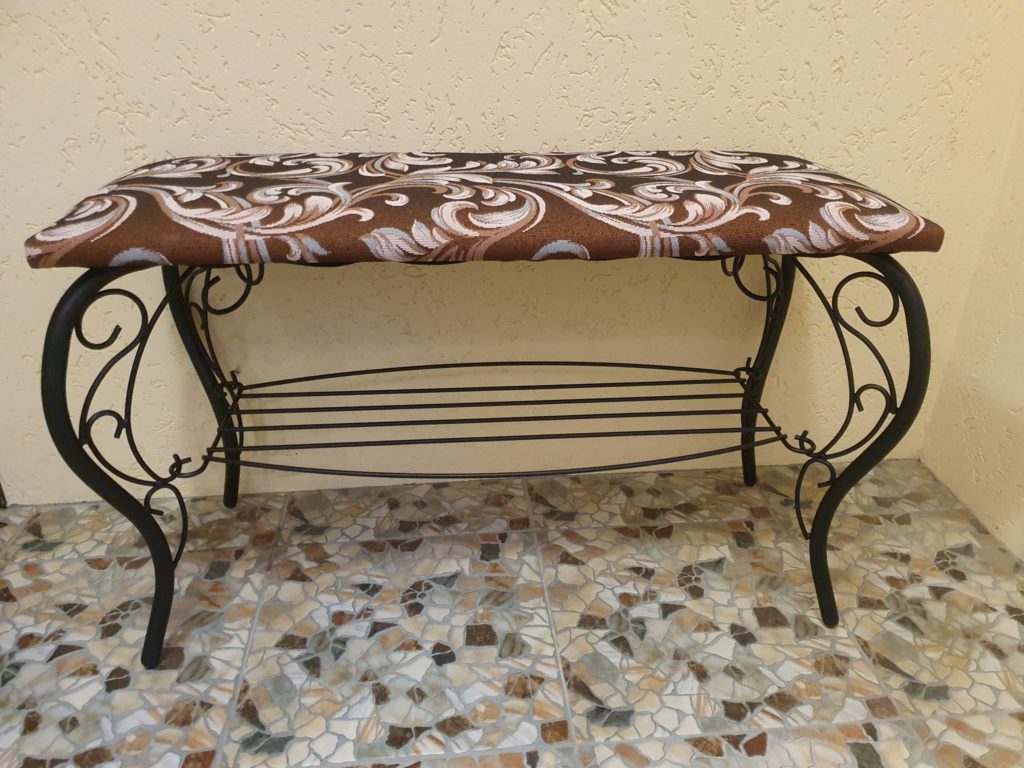 "Grace" desain ringan dan elegan model ini akan terlihat bagus di lorong. Rangka produk terbuat dari pipa logam, dicat dengan cat tahan terhadap kerusakan mekanis, dapat menahan beban hingga 90 kg. Di dalam struktur ada rak untuk sepatu yang dapat menahan berat hingga 7 kg. Kaki bangku melengkung dengan anggun dan dihiasi dengan pola. Bagian atas kursi empuk.