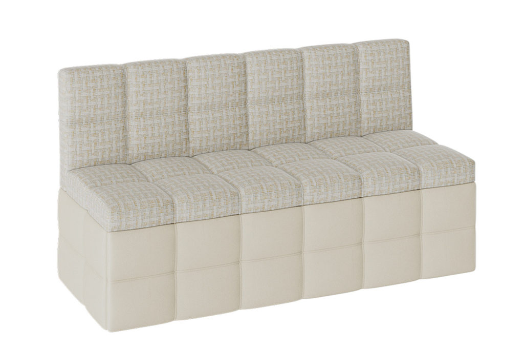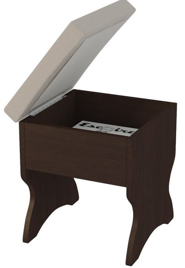 Bangku "Domino" memiliki bentuk lurus dan sangat bagus untuk dapur kecil. Untuk pembuatan bangku, chipboard, pengisi PPU digunakan, dan velour dan leatherette bertindak sebagai bahan pelapis. Ada kotak penyimpanan besar di bawah kursi.