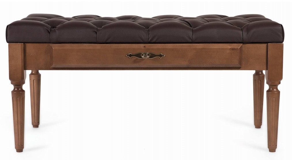 "Olivia" dibuat dalam gaya klasik dan merupakan tambahan yang bagus untuk lorong. Strukturnya terbuat dari kayu birch padat dan sangat tahan lama dan dapat diandalkan. Bagian tempat duduk ditutupi dengan kulit ramah lingkungan, dibingkai dalam dasi kereta. Juga, produsen telah menyediakan laci untuk menyimpan berbagai barang kecil. Bangku ini akan terlihat sempurna dengan gantungan dari seri yang sama.