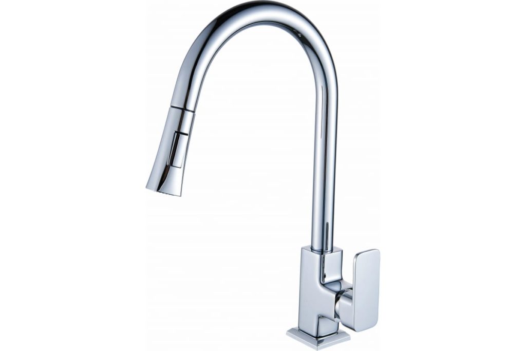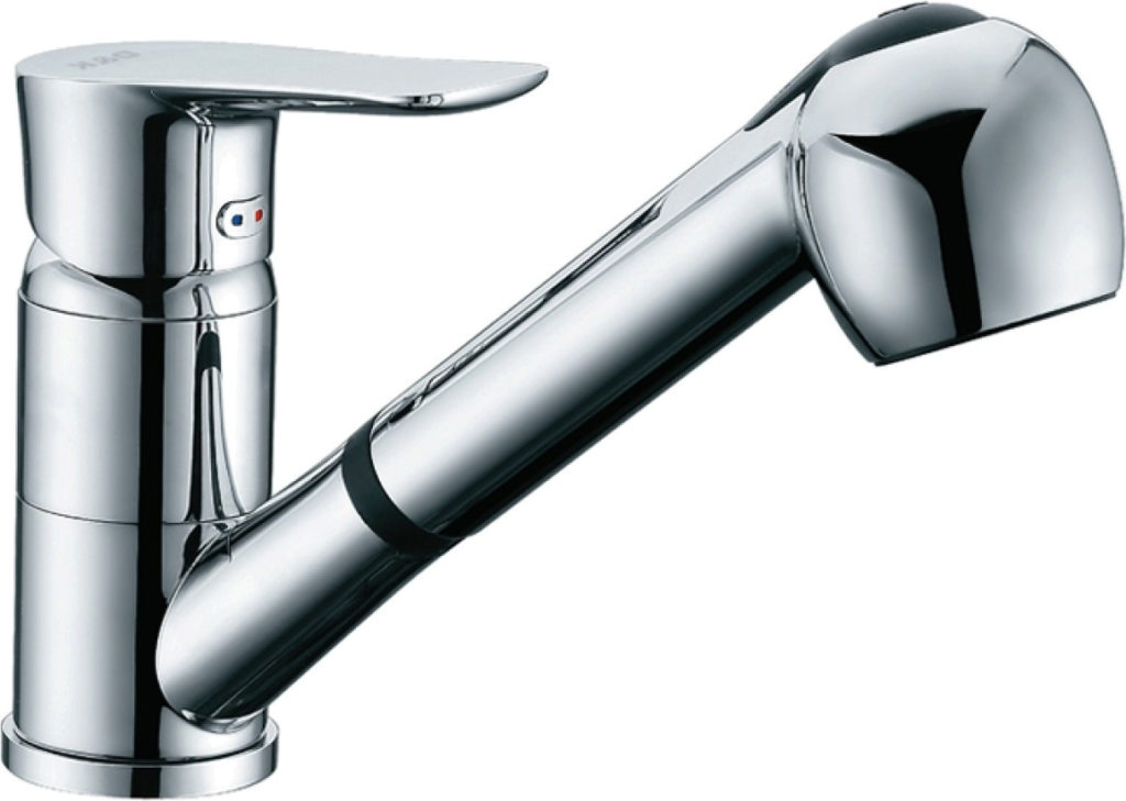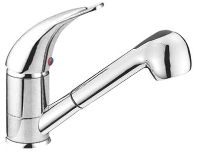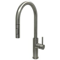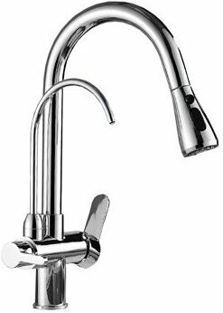 Keran dapur dengan kaleng penyiram tarik dan pancuran hujan dari merek terkenal terbuat dari stainless steel, akan bertahan lama, tidak terkena korosi. Model ini memiliki beberapa mode, memungkinkan Anda memilih kondisi kerja yang nyaman dengan perangkat. Berat: 1,5kg. Harga rata-rata: 4690 rubel.