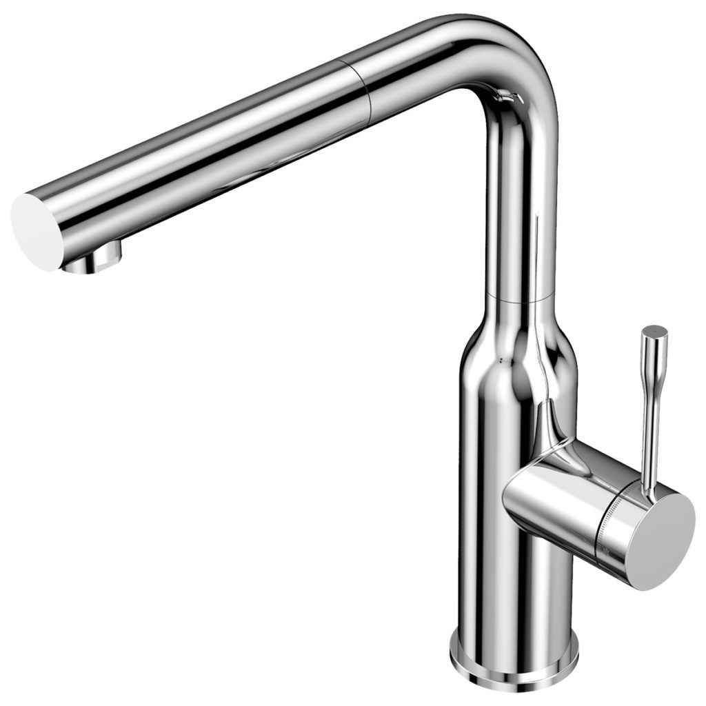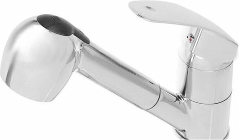 Perusahaan menawarkan solusi modern untuk dapur dengan interior yang berbeda. Desain yang stylish akan terlihat ringkas dalam skema warna apa pun. Jenis cerat: dapat ditarik, putar. Aliran air maksimum adalah 6 l/menit. Sudut rotasi pegangan ke bawah / atas: 160 derajat. Panjang cerat: 20 cm, panjang gagang: 11 cm. Tinggi: 13 cm. Berat: 1,5 kg. Kit ini mencakup selang fleksibel 1/2″ (300-400 mm). Harga rata-rata: 1550 rubel.