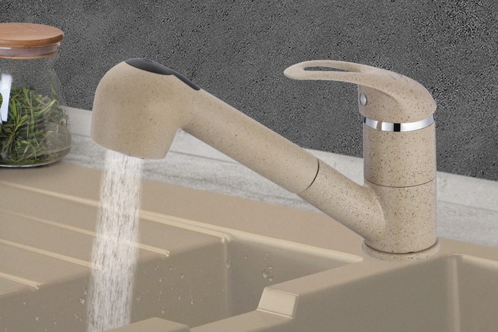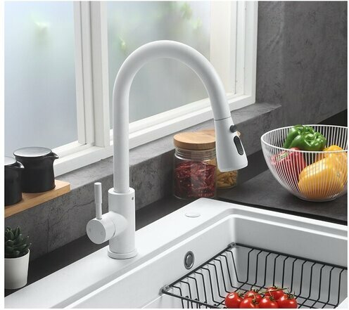 Model dengan kontrol tuas dan pelapis berkualitas tinggi, memastikan daya tahan penggunaan dan pelestarian penampilan produk. Kaleng penyiraman yang dapat ditarik dan nyaman memungkinkan Anda mengumpulkan air dan membilas buah tanpa percikan dan aliran air berlebih. Jumlah lubang pemasangan: 3 pcs Harga rata-rata: 2170 rubel.