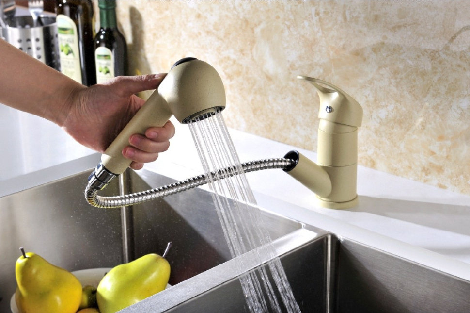 Keran dengan kaleng penyiram tarik adalah perangkat yang memiliki selang bergerak built-in yang menambah panjang cerat. Secara penampilan, mixer seperti itu tidak berbeda dengan model standar, tetapi pada saat yang sama memperluas ruang kerja di dapur.