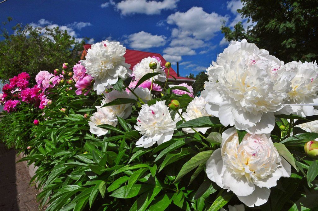 Peony mekar di bulan Mei-Juli - ini adalah perayaan jiwa yang nyata: aroma lembut dan ringan melayang di sekitar taman. Dan matahari dan penyiraman tepat waktu menjamin pertumbuhan yang cepat.