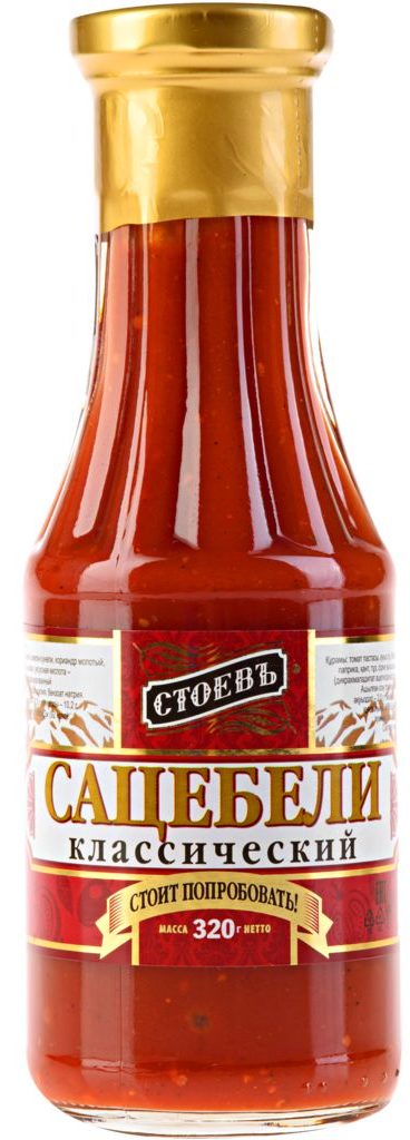 Merek dagang Stoev menghasilkan saus satsebeli dengan konsistensi kental dengan aroma bumbu dan rempah Kaukasia yang nyata, mengikuti resep nasional.