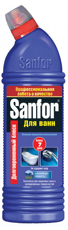Gel ini tersedia dalam berbagai wewangian: kesegaran alpine, pinus dan lemon. Sangat cocok untuk semua jenis bak mandi (termasuk akrilik), ubin, faience dan keramik, baja galvanis dan stainless. Menurut pabrikan, itu tidak merusak permukaan ini bahkan dengan penggunaan sehari-hari. Salah satu keunggulan gel adalah adanya komposisi zat khusus yang mencegah kontaminasi berikutnya, sehingga permukaan tetap bersih dan mengkilap untuk waktu yang lama.