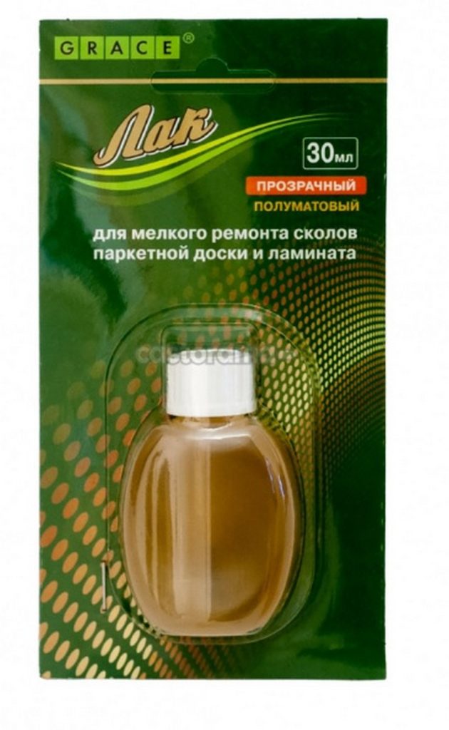 Pernis ini secara eksklusif bersifat korektif dan digunakan untuk restorasi lokal dari kerusakan kecil. Bekerja sangat baik pada laminasi atau parket. Hal ini ditandai dengan kemampuan yang baik untuk menyembunyikan retakan, keripik dan goresan. Volume wadah adalah 30 mililiter, tempat kelahiran merek adalah Rusia. Harga yang disarankan untuk rantai ritel adalah 115 rubel.