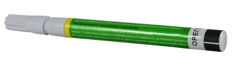 Penanda katup ini mampu menghilangkan goresan dan goresan kecil, serta cacat lainnya tanpa lekukan, pada permukaan laminasi, plastik dan kayu (termasuk jendela, pintu, dan furnitur). Dapat digunakan untuk menggelapkan goresan tepi atau mengembalikan tekstur setelah waxing. Volume cat di dalam spidol adalah 7 mililiter. Tanah air merek tersebut adalah Rusia, harga eceran yang dinyatakan adalah 160 rubel.