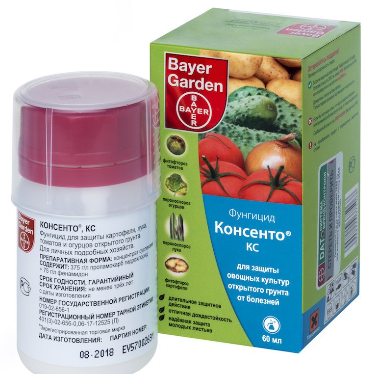 Fungisida efektif yang dapat digunakan baik pada gejala pertama maupun pada stadium lanjut. Obatnya sangat populer di kalangan tukang kebun selama periode penanaman benih. Setelah diproses, hasilnya terlihat setelah beberapa hari.
