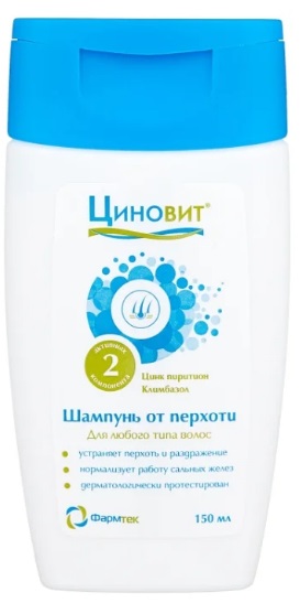 Berarti "Cynovit" dari pabrikan Rusia "Green Dubrava" termasuk vitamin kelompok B, zinc pyrithione, serta climbazole. Zinc pyrithione membantu melawan jamur kulit yang menyebabkan pengelupasan dan gatal-gatal. Climbazol juga memiliki efek antijamur. Urea, yang merupakan bagian dari "Cynovit", melembabkan dan memberi nutrisi pada kulit, berpartisipasi dalam proses pengelupasan kulit.